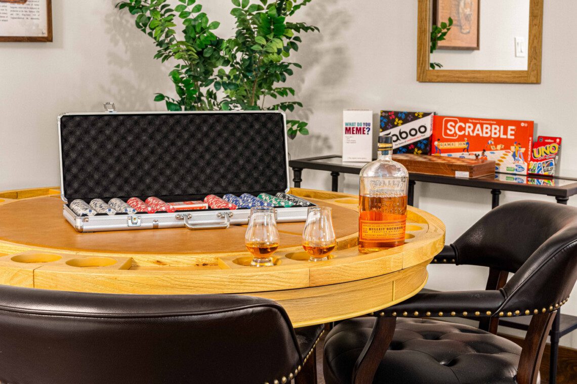 ► Poker table, shuffleboard and other games